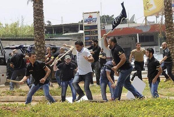 A violent clash between “for and against Hezbollah presence in Syria” has erupted in front Iranian Embassy in Beirut when pro-Hezbollah demonstrators attacked bus full of anti-Hezbollah protesters heading for Iranian embassy demonstration.